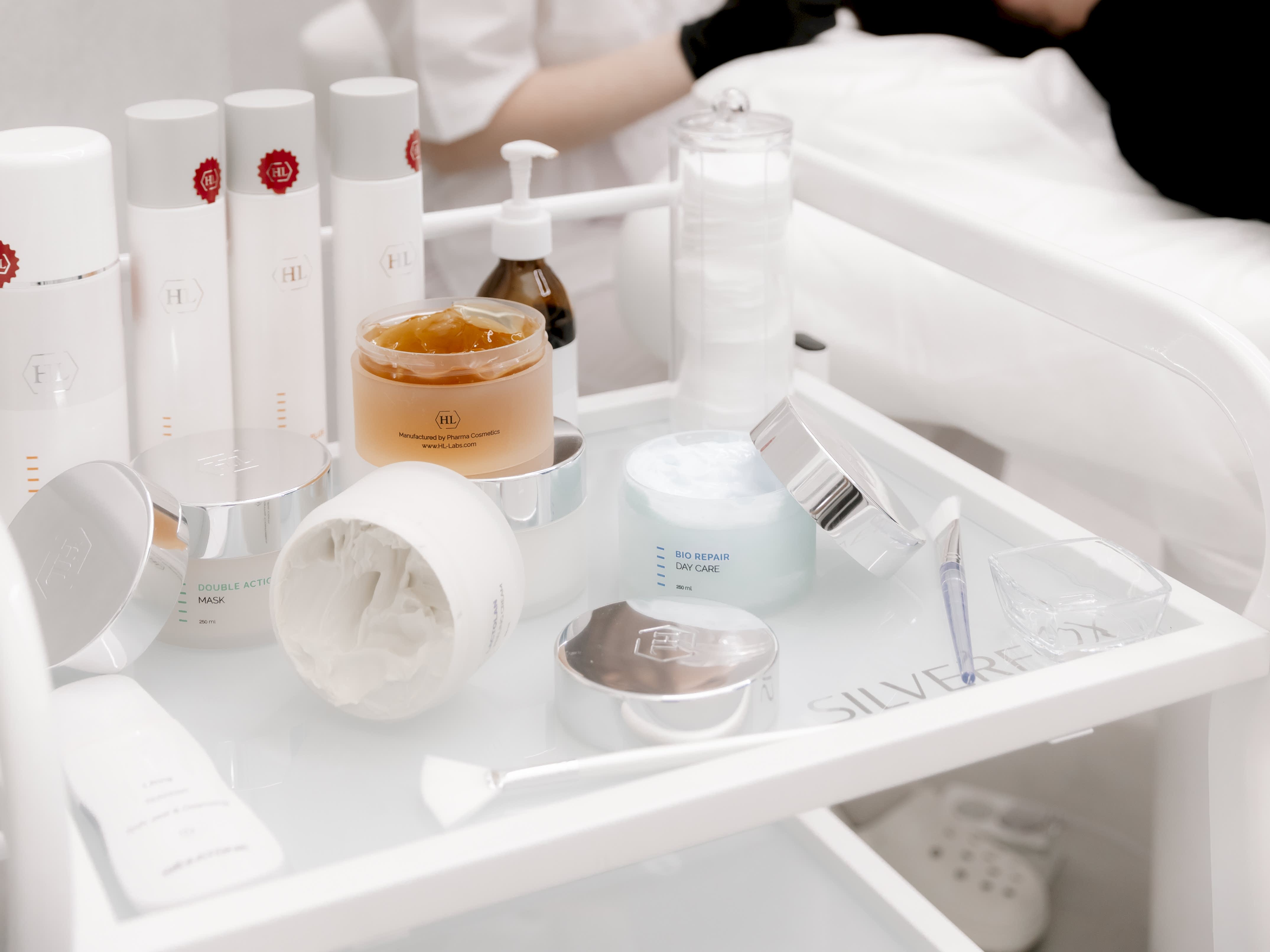 В «Pin Up» для чистки мы используем космецевтику Holy Land (Израиль), которая включает в себя несколько этапов (не то что раньше, распарили, надавили и запарили):